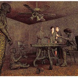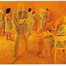 Vykort "The Cocktail Party" 1992 Sandy Skoglund /fotokonst/ostbågar