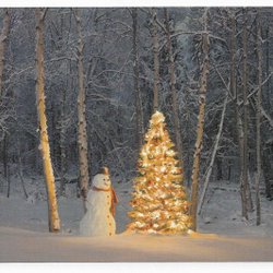 Dubbelt julkort med kuvert /snögubbe/julgran/jul