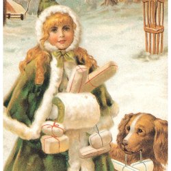 Vykort jul/hundar/retro/julkort