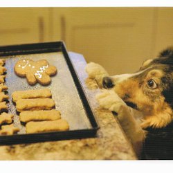 Dubbelt julkort med kuvert /jul/pepparkakor/kakbak/hund