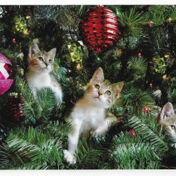 Dubbelt julkort med kuvert /jul/julgran/katt
