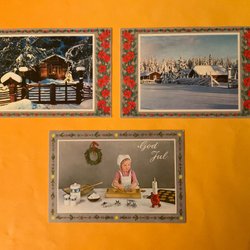 Julkort. OSKRIVNA KORT. Vykort. 3 äldre kort med fina motiv. Vinterm. Julsaker.