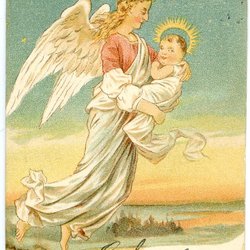 Gammalt Julkort osign Trn med ängel o barn
