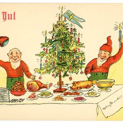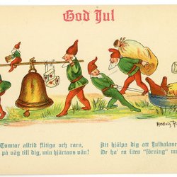 Äldre Julkort Sign Hedvig Rosendahl Tomtar o grisar