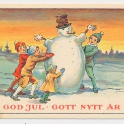 Tycho Ödberg Julkort Småkort 4 barn tycks försöka flytta på snögubbe Porto 1938*