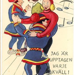 Vykort sign Asker med samer som dansar med kvinnor