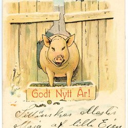 Gammalt vykort Sign Trn med Gris o skata