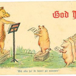 Äldre Vykort sign H Rosendahl God Jul med grisar som sjunger