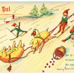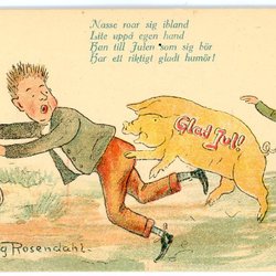 Äldre Julkort Sign Hedvig Rosendahl Gris jagar man