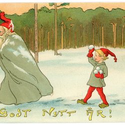 Äldre Vykort sign H.Borg Med barn som kastar snöboll på äldre man