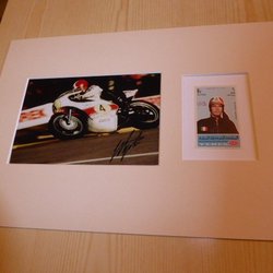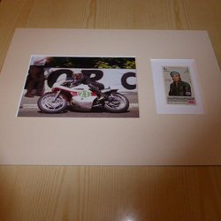 Giacomo Agostini MotoGP fotografi & 1969 frimärk med passepartout storlek A4
