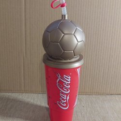 Coca-Cola Bägare med Fotbollslock och Sugrör