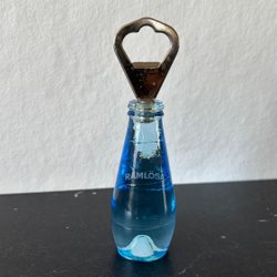 Flasköppnare massivt glas Lindshammar, form av Ramlösaflaska