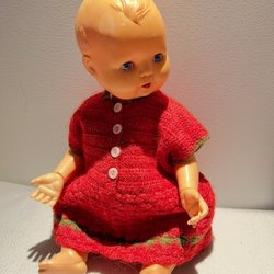 Retro Docka med blundögon i tidsenlig Röd Klänning