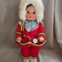 Vintage Docka i Folkdräkt med Pälsjacka