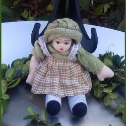 Äldre Antik Virkad Docka i Tyg & Plast