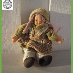 Välekiperad tomteflicka stickad tröja porslinshuvud keramiksko Samlardocka CHARM
