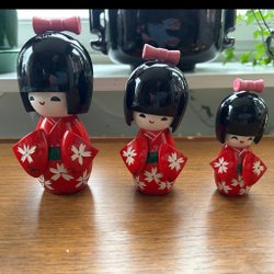 Kokeshi dockor. Set med tre Kokeshi- dockor