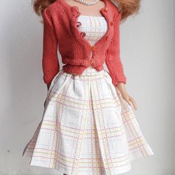 Ursnyggt set klänning+kofta till Barbie (efter äldre mönster från 1960-talet)