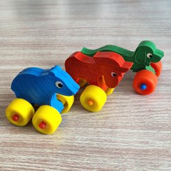 Vintage 1960s West Germany Rubber Animal Toys on Wheels – Set of 3