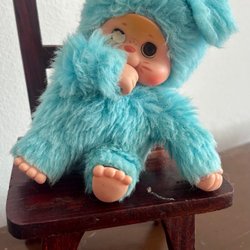 Large vintage plush Monchhichi with BLUE sleepeyes Toho collectible 43 cm