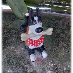 Hund från Husdjurens hemliga liv med röd scarf och ben i munnen McDonalds