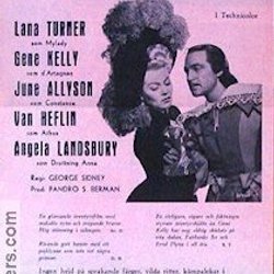 Filmaffisch DE TRE MUSKETÖRERNA (1949/60) Lana Turner Gene Kelly June Allyson Ge