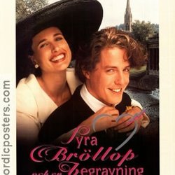 Bioaffisch FYRA BRÖLLOP OCH EN BEGRAVNING (1993) Hugh Grant Andie MacDowell Jame