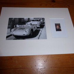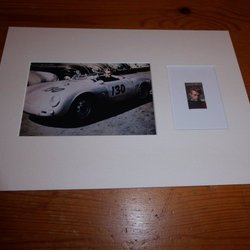 James Dean Porsche 550 Spyder fotografi & original frimärk med passepartout