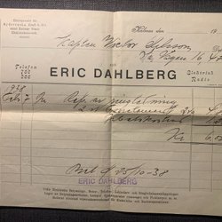 Kvitto från Eric Dahlberg elektrisk radio i Kalmar 1938