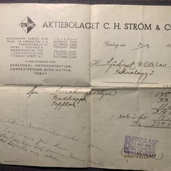 Kvitto från Aktiebolaget C. H. Ström & Co i Göteborg från 1938