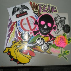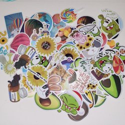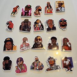 - Musikrelaterade klistermärken, allt från klassisk rock till modern pop.