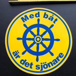 Med båt är det Sjönare - äldre dekal - reklam båtar marin fiske mm
