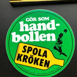 Handbollen spolar kröken - äldre dekal reklam systembolaget handboll sport spola