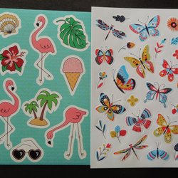 7 ARK STICKERS: FLAMINGOS/VÄXTER, FJÄRILAR, KAFFE, TÅRTA/BALLONGER MM