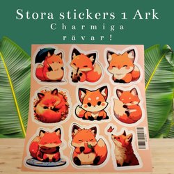 1 ARK MED 9 STORA VINYL STICKERS KLISTERMÄRKEN • SÖTA CHARMIGA RÄVAR • RÄV •
