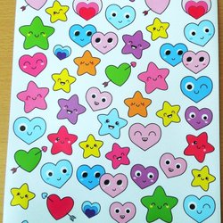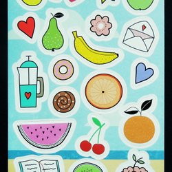 6 ARK STICKERS: FRUKTER, BLOMMOR, FJÄRILAR, KALAS; HJÄRTAN, STJÄRNOR
