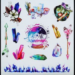 2 ARK STICKERS: KRISTALLER, LJUS, TIMGLAS, ÖRTER