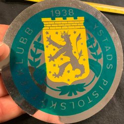 Ystads Pistolskytteklubb ystad äldre klistermärke -( skytte jakt vapen pistol )