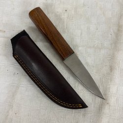 Handgjord kniv med trähandtag och läderskydd trekronor //37