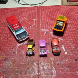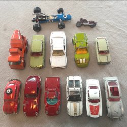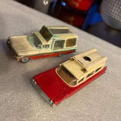 Begagnade Corgi bilar i olika skick