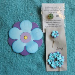 MAJBLOMMA PINS 2022 i Plastask med lock. Porto 12 kr.