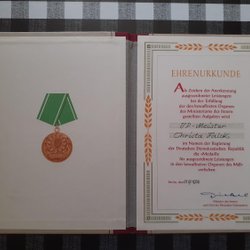 DDR Folkpolisen, Äreurkund från 1972.