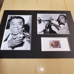 Louis Armstrong Jazz fotografi & frimärk passepartout storlek A4