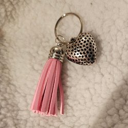 Nyckelring metallhjärta rosa tofs