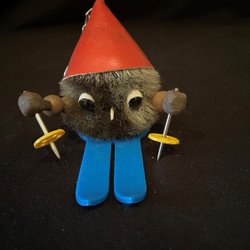Nyckelring skidåkare med päls. Storlek: 11X7 cm Ny, från äldre lanthandel