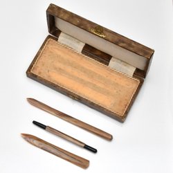 Skrivset med tre delar och låda, kaligrafi?