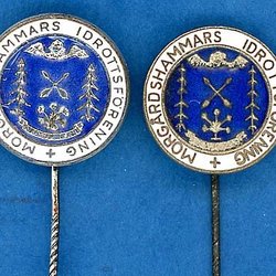Gammal klubbnål, Malmö Läroverks Idrottsförening från 1914. Se inf.