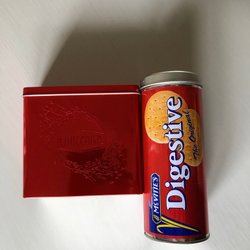 Digestive samt Finncrisp plåtburkar H 20 o 14,5 cm