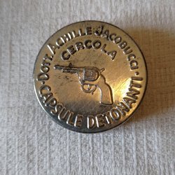 Plåtburk för ollonskott. Pistol